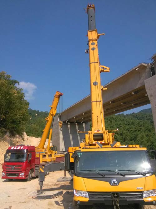 【建设行业.报道】黎明的曙光划破寂静的月夜,两台G一代百吨级起重机XCA220和XCT130同时发动引擎。机器轰鸣声开启了新一天的吊装任务。今天,这两台起重机将首次协同作战,计划完成七节80吨重的桥梁安装。