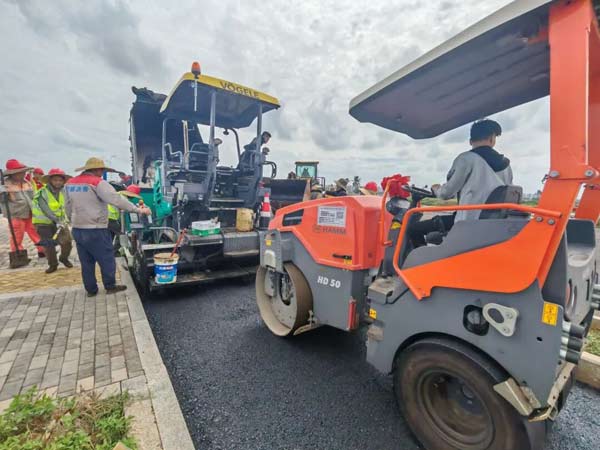 福格勒摊铺机和悍马压路机作为核心设备,保证了工程的顺利推进。