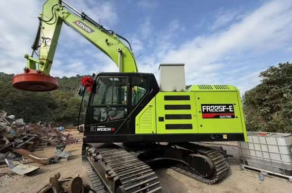 活动现场,雷沃FR215F-E纯电挖掘机成为全场的焦点,作为雷沃新能源产品矩阵的核心机型之一,其搭载潍柴三电系统,大容量电池续航6-10小时,满足全天候作业需求,实现作业零排放、低噪音,彻底解决废钢厂区尾气污染与噪音困扰;搭配废钢抓斗、大力剪等属具,完美适配废钢拆解、物料抓取等环节,动力强劲,节能高效,3年使用成本可节省超百万元。