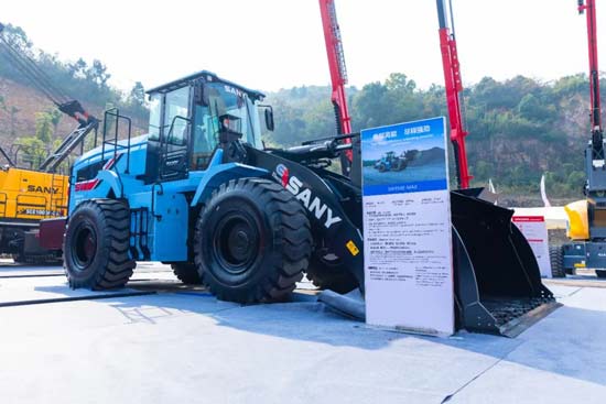 三一电动装载机在智能化、舒适性、效率及能耗方面等方面表现行业领先,获得客户的一致好评。SW956E电动装载机斩获“2023年中国工程机械年度产品TOP50新能源应用实践金奖”。在现场,全新打造的5.8T级全能型电动装载机SW956E-MAX震撼亮相,专为中重载工况设计,最大牵引力可达180kN。自主研发高效两档变速箱,侵略式换向、换挡顺滑。轻松应对-30℃~50℃的恶劣工况。
